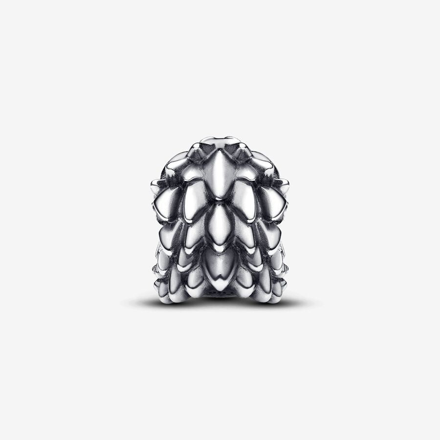 Escucha el rugido con nuestro Charm Dragón de Juego de Tronos. Fabricado en plata de primera ley, el charm del dragón se presenta con un patrón de escamas en la cabeza de la criatura y gemas rojas con forma de pera engastadas en los ojos. El dragón se presenta rugiendo con la boca abierta, unos dientes que causan asombro y un gran cristal sintético de color rojo en su interior, que representa el fuego que respiran para servir y proteger a sus seres queridos. Inspirado en las poderosas y míticas criaturas de Juego de Tronos, este charm del dragón de Pandora te permite mantener cerca su asombroso poder.