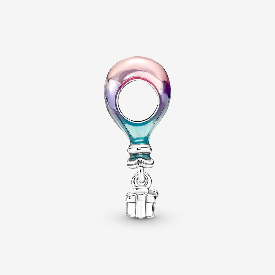 Permite que su espíritu se eleve con el Charm Globo Aerostático Feliz Cumpleaños. Acabado a mano en plata de primera ley, el globo con forma de corazón se presenta amorosamente revestido con esmalte transparente en colores púrpura, rosa y azul y con detalles de pliegues que aportan un toque realista. Un pequeño regalo cuelga del globo con cintas. El regalo perfecto para esos amantes de la aventura.
