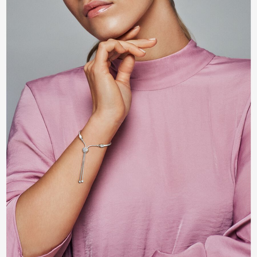 Pulsera Pandora Moments Cadena de Serpiente con Cierrre Deslizante Corazón en Pavé