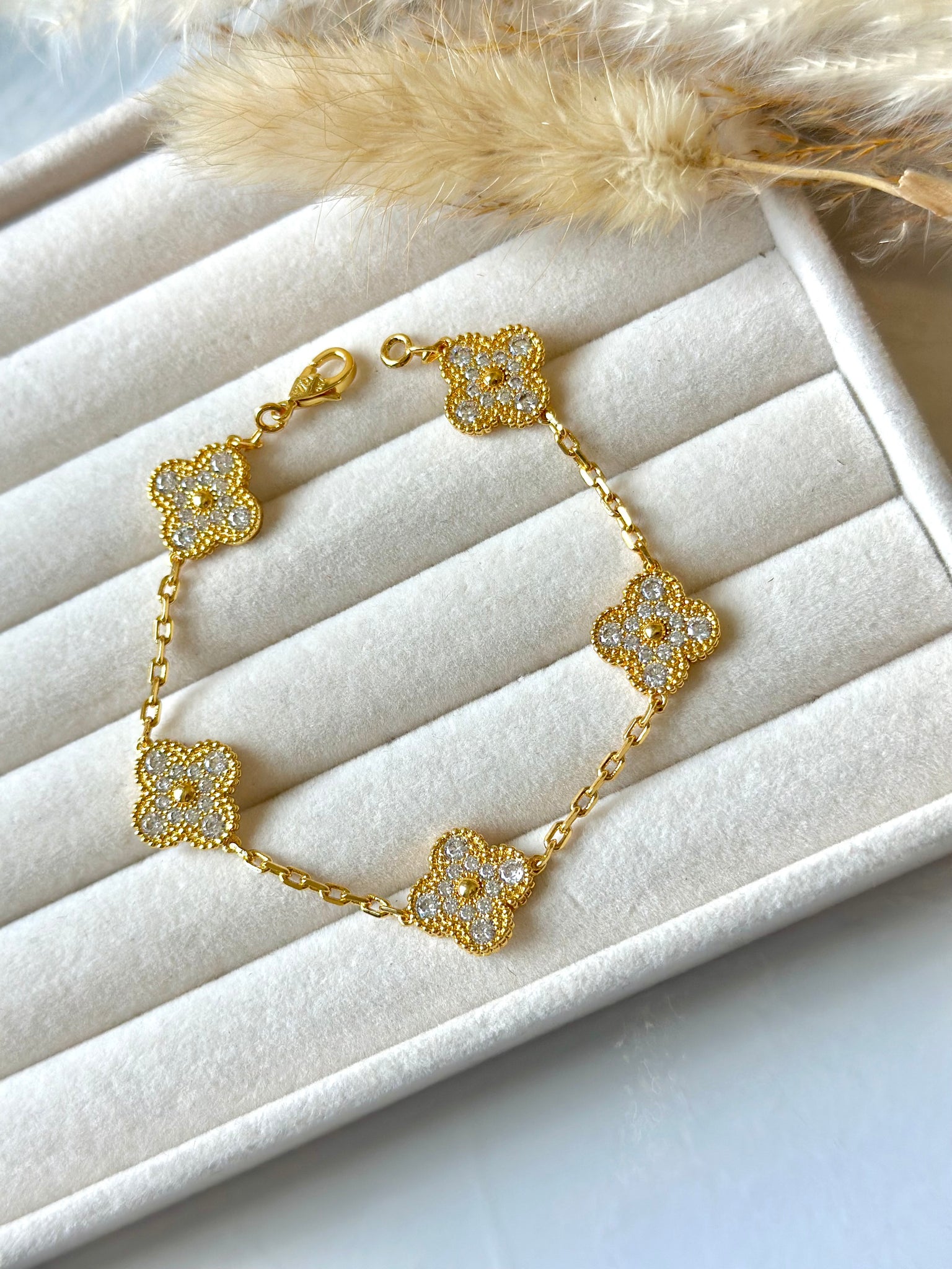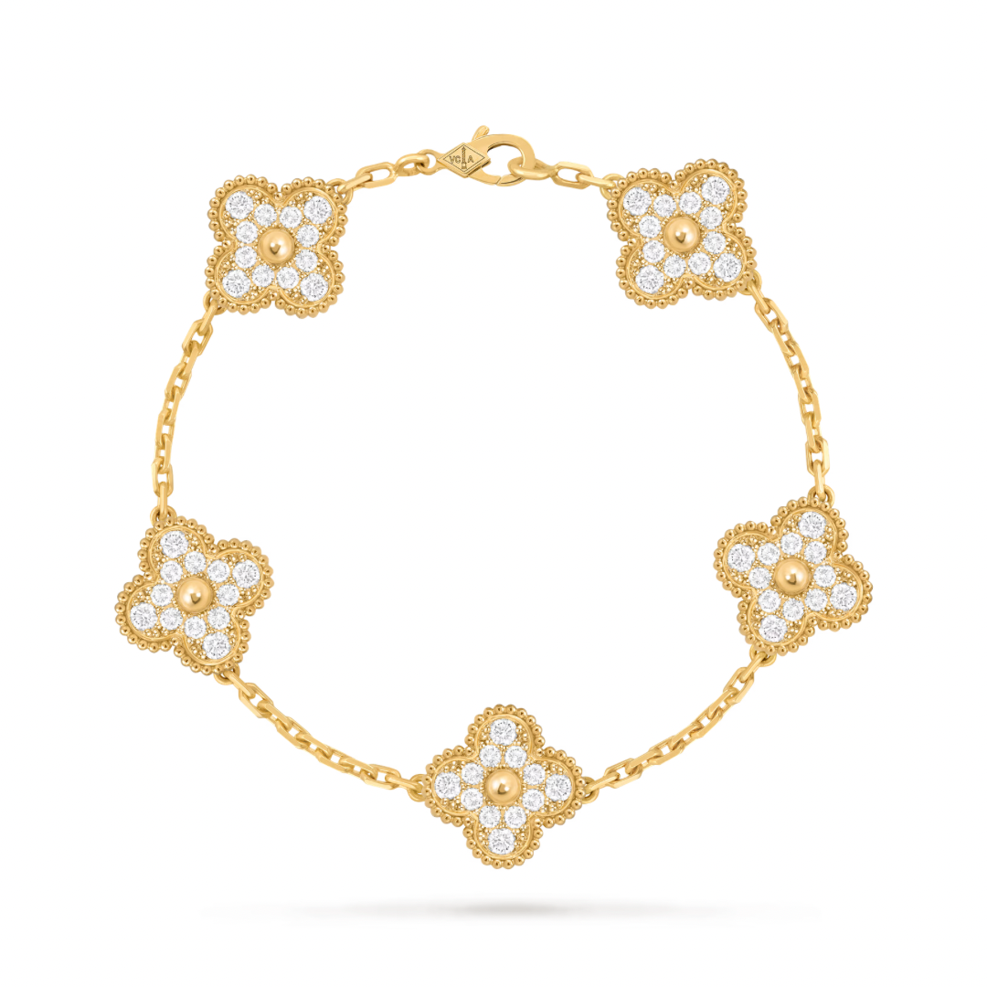 Pulsera Van Cleef Alhambra vintage 5 Tréboles Dorado con Piedras